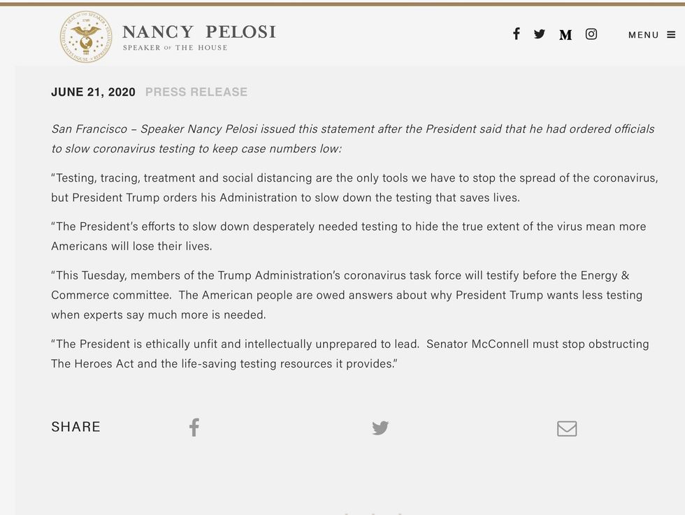 2. Nancy Pelosi. Testing, tracing, treatment & social distancing are the only tools we have to stop the spread of the coronavirus. The President's efforts to slow down testing to hide the true extent of the virus means more Americans will lose their lives.