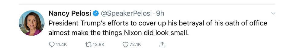 2. Speaker Pelosi also placed Trump's crime in a context, comparing Trump's activities to Nixon's.