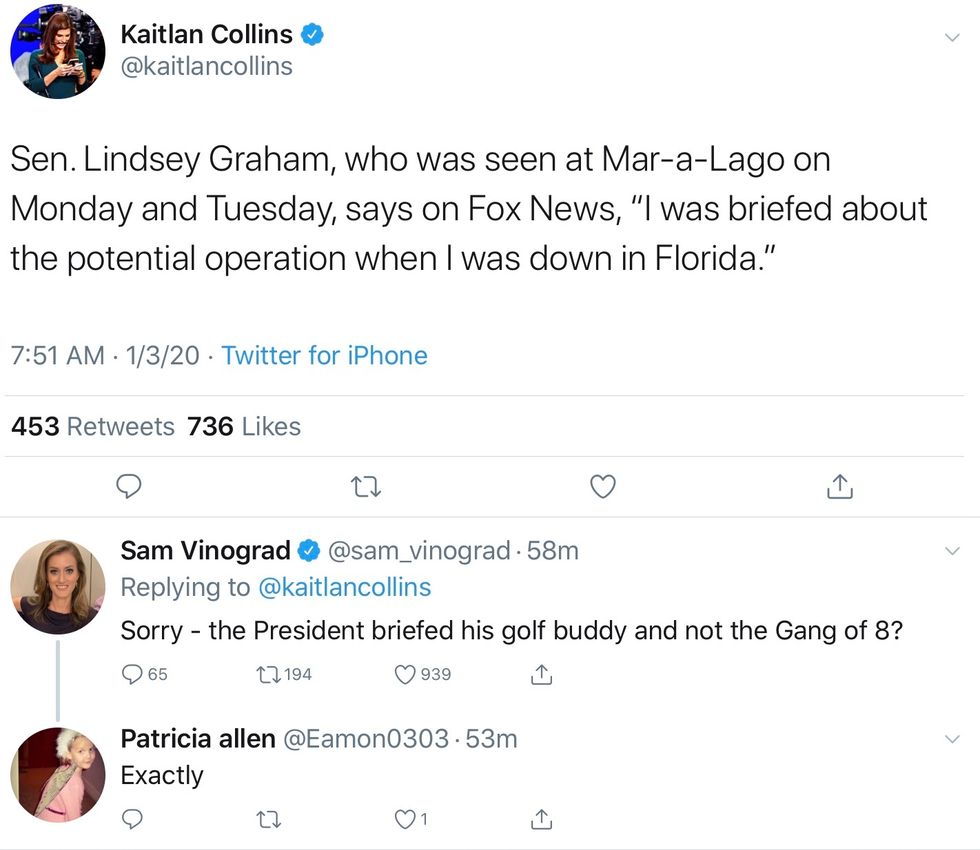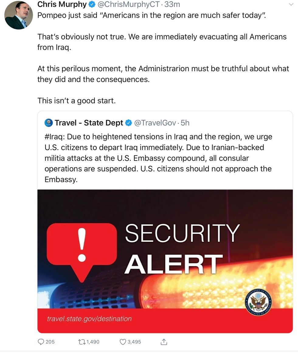 Here is the New York Times update this afternoon. Trump Says He Ordered Killing of Iranian to Prevent New Attack on Americans