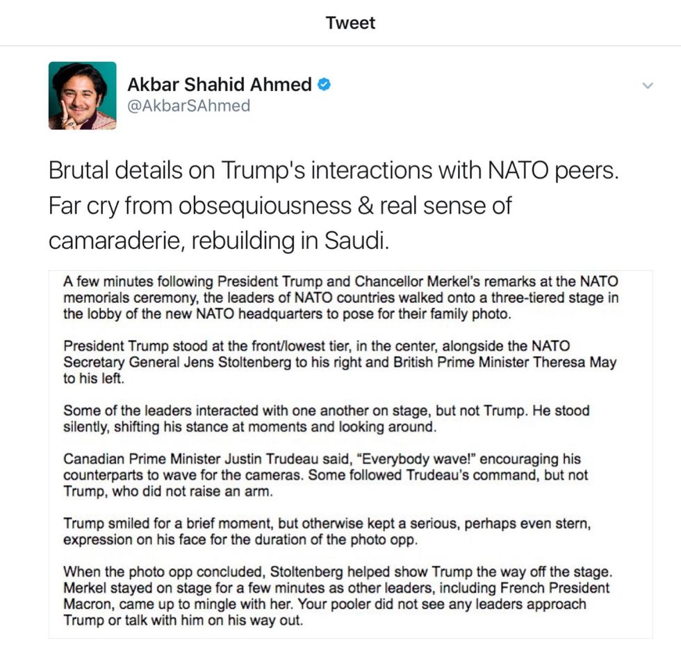 But in all seriousness, for anyone who cares about the America's global leadership and the future of Europe, Trump's behavior at the NATO summit has been embarrassing.