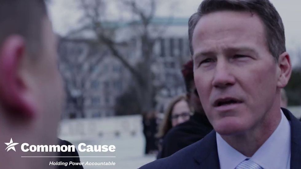 WATCH: @JoeHelle confronts @OhioSOSHusted outside of #SCOTUS. Joe is the mayor of Oak Harbor, OH & an Army veteran who was purged from the voting rolls in Ohio under Husted's orders while serving in Iraq and Afghanistan.