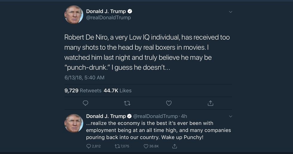 Post Script. If you care how the #FakePotus had to say, look here. Clearly, DeNiro and the Theatre Community response got under his very thin skin. Sad.