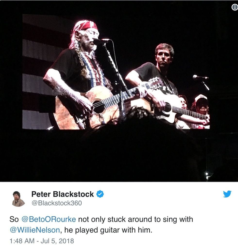 This article by David Taylor appeared in The Guardian with the title, Willie Nelson upsets fans with plans to perform at Beto O'Rourke rally.