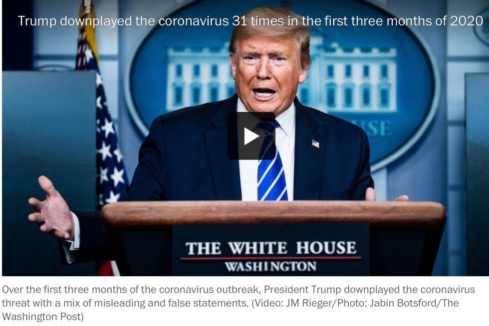Voices4America Post Script. Starting on Jan. 28, Trump knew the coronavirus was 'deadly', while 31 times, on TV and inpress conferences, he minimized the impact of the virus and chose not to take action against it. #ThousandsDied #TrumpLied Read also what Mattis and Dan Coats said about him. #BidenHarris2020