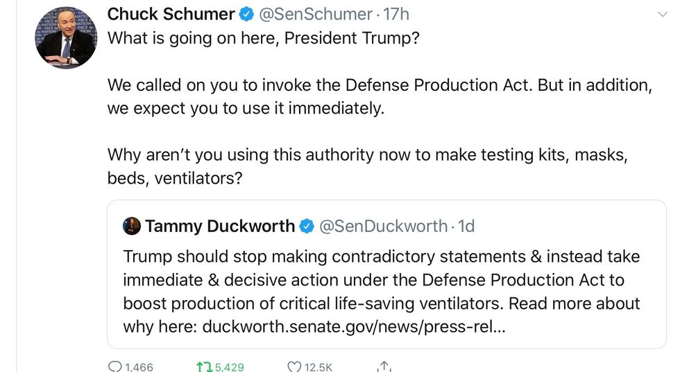 Here are Senator Charles Schumer and Senator Tammy Duckworth's responses.