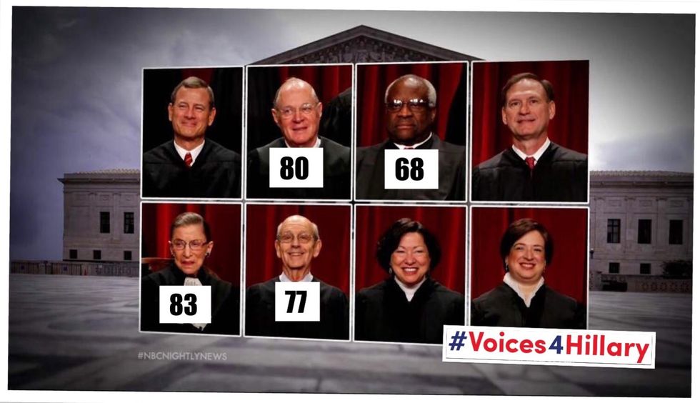Justice Ginsburg is 83. Justice Kennedy is 80. Justice Breyer is 77. And Justice Thomas is 68